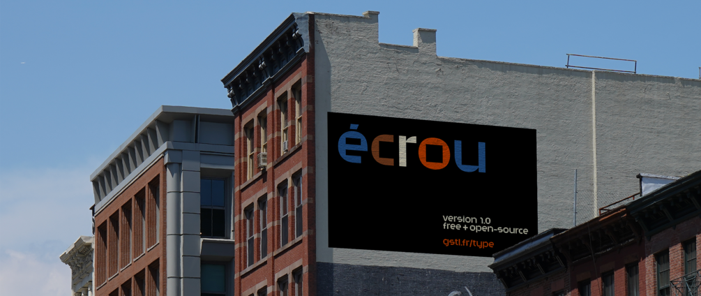 écrou is a high–x–height display typeface with a bold mechanical style.